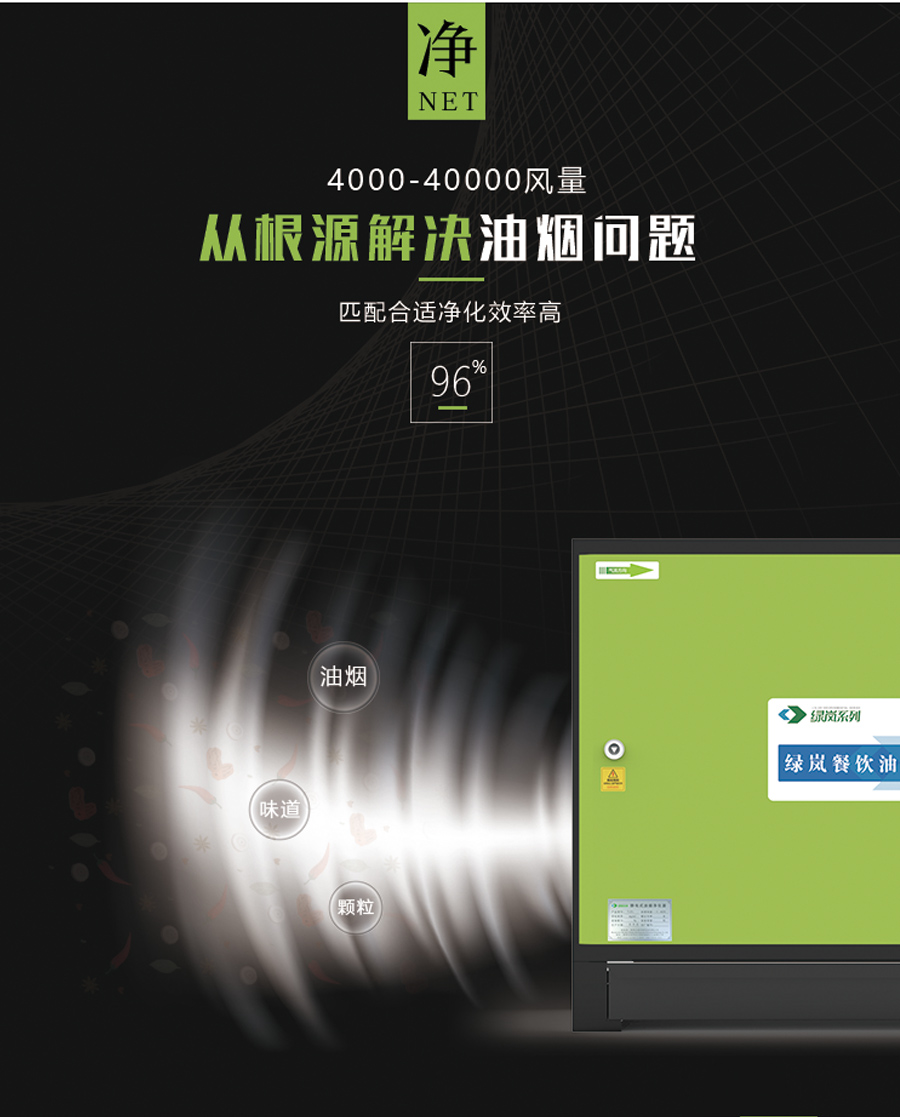 绿岚28000风量低空直排静电式餐饮厨房油烟净化器设备98%净化效率
